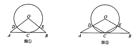 已知,如圖,△OAB中,OA=OB,⊙O經(jīng)過AB的中點(diǎn)C,且與OA、OB分別交于點(diǎn)D、E。