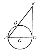 如圖,在△ABC中,AC=6,BC=8,AB=10,以AC為直徑作⊙O交AB于點D。