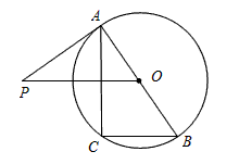 如圖,已知AB是⊙O的直徑,過(guò)點(diǎn)O作弦BC的平行線,交過(guò)點(diǎn)A的切線AP于點(diǎn)P,連接AC。