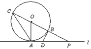 如圖,直線l切⊙O于點(diǎn)A,點(diǎn)P為直線l上一點(diǎn),直線PO交⊙O于點(diǎn)C、B,點(diǎn)D在線段AP上,連結(jié)DB,且AD=DB。