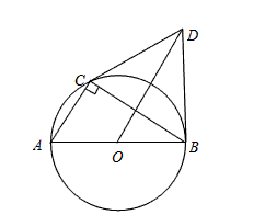如圖,⊙O是Rt△ABC的外接圓,點(diǎn)O在AB上,BD⊥AB,點(diǎn)B是垂足,OD∥AC,連接CD。