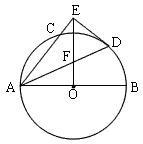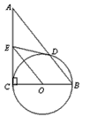 | 如圖,在Rt△ABC中,∠C=90°,以BC為直徑作⊙O交AB于點D,取AC的中點E,連結DE、OE. (1)求證:DE是⊙O的切線; (2)如果⊙O的半徑是 |