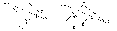 (2)若點F是DC的中點,連接BD,交AE與點G(如圖2),求證:四邊形EFDG是菱形。