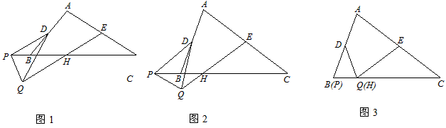 如圖1,在△ABC和△PQD中,AC=kBC,DP=kDQ,∠C=∠PDQ,D、E分別是AB、AC的中點(diǎn),點(diǎn)P在直線(xiàn)BC上,連結(jié)EQ交PC于點(diǎn)H,猜想線(xiàn)段EH與AC的數(shù)量關(guān)系,并證明你的猜想。