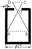 如圖,已知零件的外徑為25mm,現(xiàn)用一個(gè)交叉卡鉗(兩條尺長(zhǎng)AC和BD相等,OC=OD)量零件的內(nèi)孔直徑AB,若OC:OA=1:2,量得CD=10mm,則零件的厚度x=( )mm。