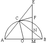如圖,AB是半圓O的直徑,C為半圓上一點(diǎn),N是線(xiàn)段BC上一點(diǎn)(不與B﹑C重合),過(guò)N作AB的垂線(xiàn)交AB于M,交AC的延長(zhǎng)線(xiàn)于E,過(guò)C點(diǎn)作半圓O的切線(xiàn)交EM于F。