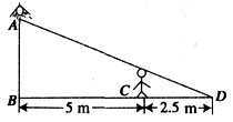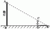 如圖,身高1.6m的張明同學(xué)站在距路燈燈桿5m的c點(diǎn)處,測(cè)得他在燈光下的影長(zhǎng)CD為2.5m,那么路燈的高度AB為( )m。