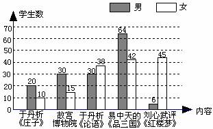 為了豐富校園文化生活,某校計(jì)劃在午間校園廣播臺(tái)播放“百家講壇”的部分內(nèi)容.為了了解學(xué)生的喜好,抽取若干名學(xué)生進(jìn)行問卷調(diào)查(每人只選一項(xiàng)內(nèi)容),整理調(diào)查結(jié)果,繪制統(tǒng)計(jì)圖如下: