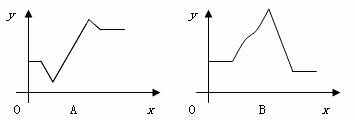 如圖,烏鴉口渴到處找水喝,它看到了一個裝有水的瓶子,但水位較低,且瓶口又小,烏鴉喝不著水,沉思一會后,聰明的烏鴉銜來一個個小石子放入瓶中,水位上升后,烏鴉喝到了水。在這則烏鴉喝水的故事中,設從烏鴉看到瓶的那刻起向后的時間為x,瓶中水位的高度為y,下列圖象中最符合故事情景的是( )