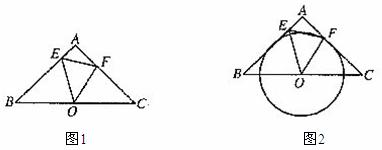如圖1所示,在△ABC中,AB=AC=2,∠A=90°,O為BC的中點,動點E在BA邊上自由移動,動點F在AC邊上自由移動.