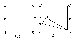 有一邊長為2的正方形紙片ABCD,先將正方形ABCD對折,設(shè)折痕為EF(如圖(1));再沿過點D的折痕將角A反折,使得點A落在EF的H上(如圖(2)),折痕交AE于點G,則EG的長度為 ( )