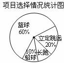 光明中學(xué)七年級1班同學(xué)積極響應(yīng)“陽光體育工程”的號召,利用課外活動(dòng)時(shí)間積極參加體育鍛煉,每位同學(xué)從長跑、籃球、鉛球、立定跳遠(yuǎn)中選一項(xiàng)進(jìn)行訓(xùn)練,訓(xùn)練前后都進(jìn)行了測試.現(xiàn)將項(xiàng)目選擇情況及訓(xùn)練后籃球定時(shí)定點(diǎn)投籃測試成績整理后作出如下統(tǒng)計(jì)圖表.