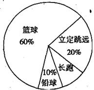 光明中學(xué)七年級(jí)1班同學(xué)積極響應(yīng)“陽光體育工程”的號(hào)召,利用課外活動(dòng)時(shí)間積極參加體育鍛煉.每位同學(xué)從長(zhǎng)跑、籃球、鉛球、立定跳遠(yuǎn)中選一項(xiàng)進(jìn)行訓(xùn)練,訓(xùn)練前后都進(jìn)行了測(cè)試.現(xiàn)將項(xiàng)目選擇情況及訓(xùn)練后籃球定時(shí)定點(diǎn)投籃測(cè)試成績(jī)整理后作出如下統(tǒng)計(jì)圖表.請(qǐng)你根據(jù)圖表中的信息回答下列問題: