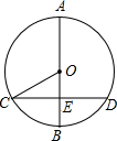 如圖,AB⊙O的直徑,CD⊥AB于E,連OC,OC=5,CD=8,則tan∠COE=