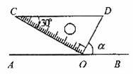 如圖,將三角板的直角頂點放置在直線AB上的點O處,使斜邊CD∥AB。則的正切值為 。
