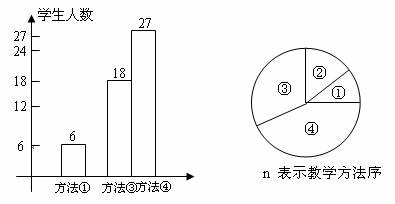 (1)請(qǐng)將條形統(tǒng)計(jì)圖補(bǔ)充完整,并計(jì)算扇形統(tǒng)計(jì)圖中方法③的圓心角.
