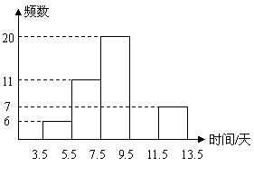 某中學(xué)為了解畢業(yè)年級(jí)800名學(xué)生每學(xué)期參加社會(huì)實(shí)踐活動(dòng)的時(shí)間,隨機(jī)對(duì)該年級(jí)60名學(xué)生每學(xué)期參加社會(huì)實(shí)踐活動(dòng)的時(shí)間(單位:天)進(jìn)行了統(tǒng)計(jì)(統(tǒng)計(jì)數(shù)據(jù)取整數(shù)),整理后分成5組,繪制成頻數(shù)分布表和頻數(shù)分布直方圖(部分)如右圖.