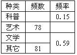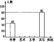 (3)隨機調(diào)查一名學(xué)生,估計恰好是喜歡文學(xué)類圖書的概率是 .