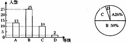 某校為了了解九年級學生體育測試成績情況,以九年(1)班學生的體育測試成績?yōu)闃颖,按A、B、C、D四個等級進行統(tǒng)計,并將統(tǒng)計結果繪制成如下兩幅統(tǒng)計圖,請你結合圖中所給信息解答下列問題: