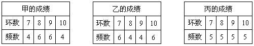 甲、乙、丙三名射擊運(yùn)動(dòng)員在某場(chǎng)測(cè)試中各射擊20次,3人的測(cè)試成績(jī)?nèi)缦卤?/p>