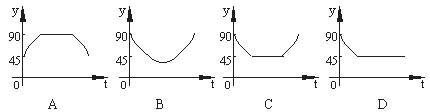 如圖,A、B、C、D為⊙O的四等分點(diǎn),動(dòng)點(diǎn)P從圓心O出發(fā),沿O ― C ― D ― O路線作勻速運(yùn)動(dòng).設(shè)運(yùn)動(dòng)時(shí)間為t(s),∠APB=y(°),則下列圖象中表示y與t之間函數(shù)關(guān)系最恰當(dāng)?shù)氖?/p>
