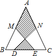 如圖,在△ABC中,AB=AC=13,M、N分別為AB、AC的中點(diǎn),D、E在BC上,且DE=5,BC=10,連接DN、EM,