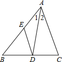 已知:如圖,在△ABC中,∠1=∠2,DE∥AC,求證: