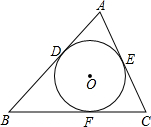 如圖,⊙O是△ABC的內(nèi)切圓,切點(diǎn)分別為D、E、F,AB=10,BC=9,AC=7,則AD=