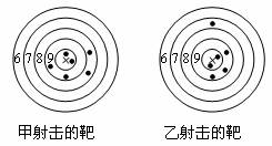 如圖是甲、乙兩人在一次射擊比賽中擊中靶的情況(擊中靶中心的圓面為10環(huán),靶中各數(shù)字表示該數(shù)所在圓環(huán)被擊中所得的環(huán)數(shù))每人射擊了6次.