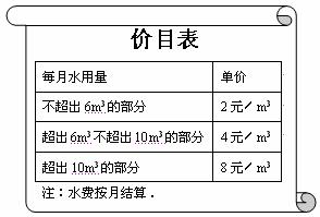 為了加強(qiáng)公民的節(jié)水意識(shí),合理利用水資源,某市采用價(jià)格調(diào)控手段達(dá)到節(jié)水的目的.該市自來(lái)水收費(fèi)價(jià)格見(jiàn)價(jià)目表.若某戶居民