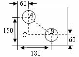 如圖是一個外輪廓為矩形的機(jī)器零件平面示意圖,根據(jù)圖中的尺寸(單位:),計算兩圓孔中心和的距離為______.