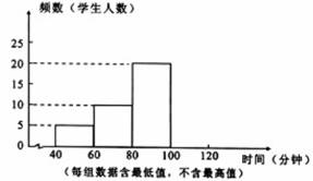 為了了解學(xué)生課業(yè)負(fù)擔(dān)情況,某初中在本校隨機(jī)抽取50名學(xué)生進(jìn)行問卷調(diào)查,發(fā)現(xiàn)被抽查的學(xué)生中,每天完成課外作業(yè)時(shí)間,最長(zhǎng)不足120分鐘,沒有低于40分鐘的.并將抽查結(jié)果繪制成了一個(gè)不完整的頻數(shù)分布直方圖,如圖所示.