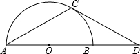 如圖,點D在⊙O的直徑AB的延長線上,點C在⊙O上,AC=CD,∠D=30°,