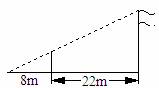 如圖,為測(cè)量學(xué)校旗桿的高度,小東用長(zhǎng)為3.2m的竹竿做測(cè)量工具.移動(dòng)竹竿,全竹竿、旗桿頂端的影子恰好落在地面的同一點(diǎn),此時(shí),竹竿與這一點(diǎn)相距8m,與旗桿相距22米,則旗桿的高為_(kāi)____________m.
