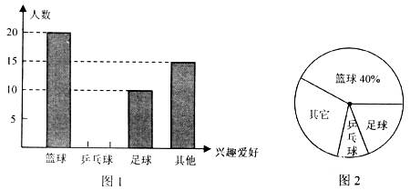 為響應(yīng)國家要求中小學(xué)生每天鍛煉1小時的號召,某校開展了形式多樣的“陽光體育運動”活動,小明對某班同學(xué)參加鍛煉的情況進行了統(tǒng)計,并繪制了下面的圖1和圖2,請在圖1中將“乒乓球”部分的圖形補充完整.
