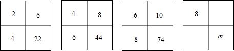 如圖,填在下面各個正方形中的四個數(shù)之間都有相同的規(guī)律,根據(jù)此規(guī)律,m的值是( 。