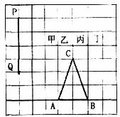 如圖,若A、B、C、P、Q、甲、乙、丙、丁都是方格紙中的格點,為使△ABC∽△PQR,