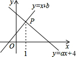 如圖,已知函數(shù)y=x+b和y=ax+4的圖象交點(diǎn)為P,則不等式x+b>ax+4的解集為