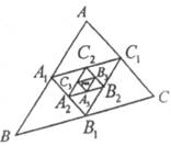 如圖,已知△ABC的周長為1,分別連接AB,BC,CA各邊的中點(diǎn)得△A1B1C1,再連接A1B1,B1C1,C1A1的中點(diǎn)得△A2B2C2,……,這樣延續(xù)下去,最后得△AnBnCn.那么△AnBnCn的周長等于 .