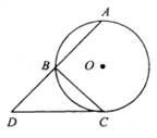 如圖,AB,BC是⊙O的兩條弦,且BC⊥AB,延長AB至D,使BD=AB,連接DC。當弦AB與BC滿足什么關(guān)系時,DC為⊙O的切線?證明你的結(jié)論。