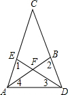 如圖,已知∠1=∠2,∠3=∠4,AB與DE交于點F,則圖中相等的線段共有( 。