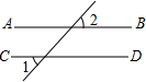 如圖,已知直線AB∥CD,∠1=40°,則∠2=
