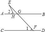 如圖,直線AB∥CD,直線EF交AB于G,交CD于F,直線EH交AB于H,直線EH交AB于H.若∠1=45°,∠2=60°,求∠E的度數(shù).