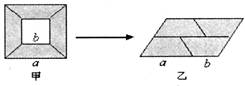 從邊長(zhǎng)為的大正方形紙板中挖去一個(gè)邊長(zhǎng)為的小正方形紙板后,將其裁成四個(gè)相同的等腰梯形(如圖甲),然后拼成一個(gè)平行四邊形(如圖乙)。那么通過計(jì)算兩個(gè)圖形陰影部分的面積,可以驗(yàn)證成立的公式為( )