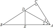 如圖,∠1=∠2,∠C=90°,若DC=6,AC=8,則D到AB的距離DE=