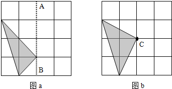 (1)在圖a空白的方格中,畫出陰影部分的圖形沿虛線AB翻折后的圖形;