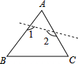 已知△ABC的∠A=60°,剪去∠A后得到一個四邊形,則∠1+∠2的度數(shù)為( 。