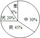 工廠對某產(chǎn)品進(jìn)行質(zhì)量檢查,分為優(yōu)、良、中、差四個等級,差為不合格產(chǎn)品,如圖是抽樣檢查結(jié)果的扇形統(tǒng)計圖,產(chǎn)品的合格率是