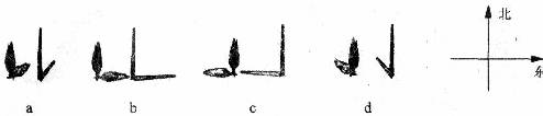 下面四幅圖是兩個物體不同時刻在太陽光下的影子,按照時間先后順序正確的是( )