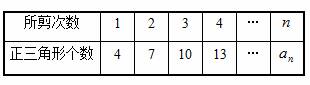 將一個正三角形紙片剪成四個全等的小正三角形(如下圖),再將其中的一個按同樣的方法剪成四個更小的正三角形,……如此繼續(xù)下去,結(jié)果如下表